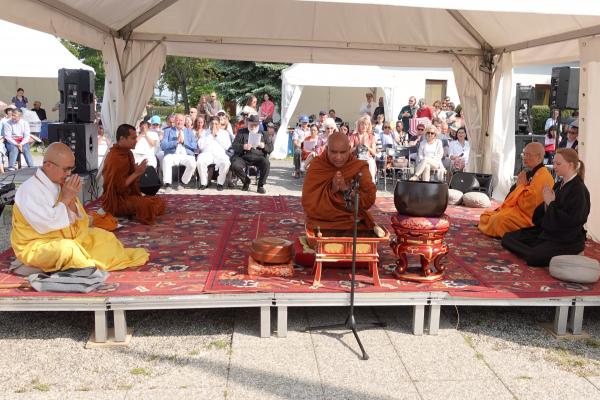 Hausherr Rev. Masunaga von Nipponzan-Myôhôji eröffnete das Programm mit einer Rezitation, der eine gemeinsame Verehrung und Zuflucht mit Maha Thero Bhante Seelawansa folgte. Gebete der thailändischen Mönche vom Buddhanuphap Tempel, das Herz Sutra von Meisterin Chueh Yen und Fo Guang Shan und vom Bodhidharma Zendo rundeten den ersten Teil ab.